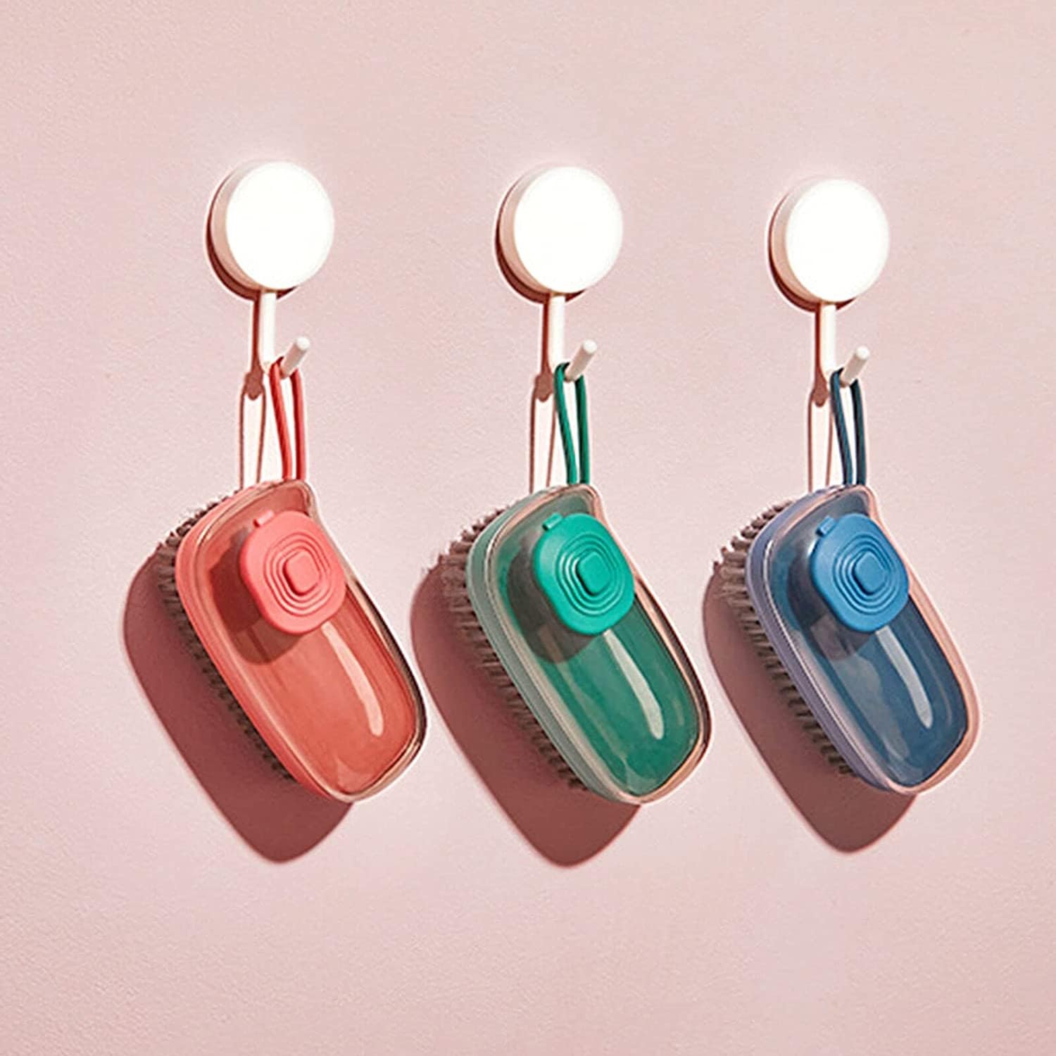 Felmico 3-in-1 Liquid Soap Dispensing Cleaning Brush – Plastic Kitchen Pot, Dish & Pan Scrubber with Soft Wool Bristles for Laundry, Shoes & Tile Cleaning (Multicolour, 1 Pc)
